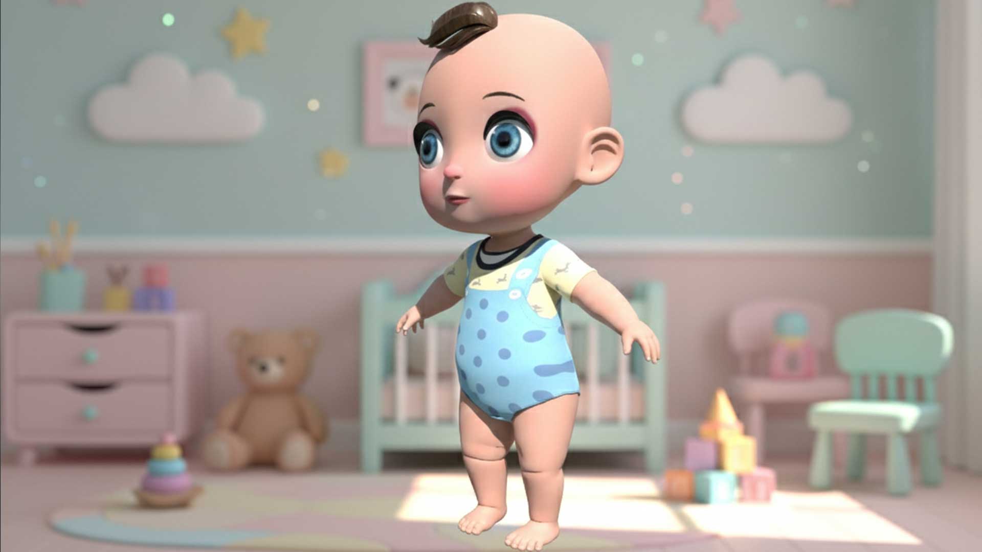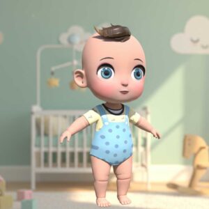 This baby boy 3D model shows a realistic human child created with accurate proportions and soft surface detail. The model includes natural body features, gentle facial expressions, and smooth topology for animation. Each part of the baby boy 3D model follows real-world anatomy to achieve lifelike realism. It works well in animation, games, medical visualization, or product design. The mesh is clean and easy to rig. It supports both low-poly and mid-poly workflows. This makes it suitable for real-time engines and high-quality rendering.