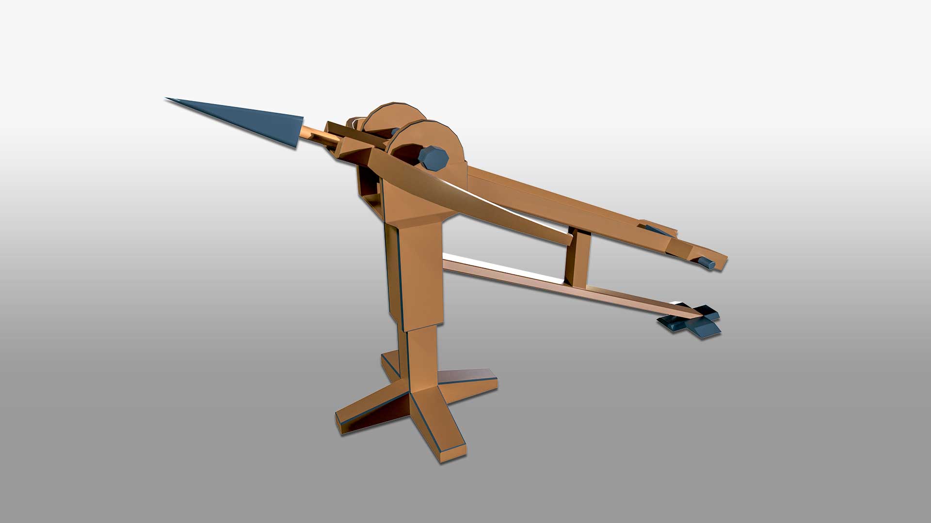 Ballista Bow 3D model features intricate details of its frame, arrow, arm, and projectile. Crafted with precision, this low-poly 3D model showcases a blend of wood and metal for the frame, ensuring authenticity and realism.