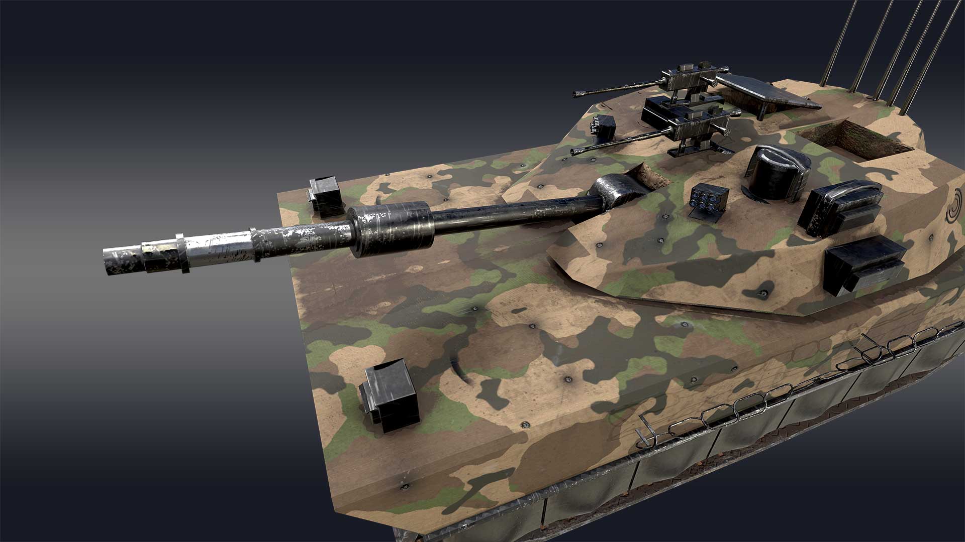 Introducing our high-quality, photorealistic 3D battle tank, designed to bring unparalleled realism and detail to your rendering projects. This battle tank 3D model is fully textured with intricate details, making it perfect for close-up renders and professional 3D modeling needs. Originally created in Maya 2022, this 3D tank features a powerful 120mm smoothbore cannon, coaxial and secondary machine guns, and advanced military technology, including thermal imaging and computerized fire control systems.