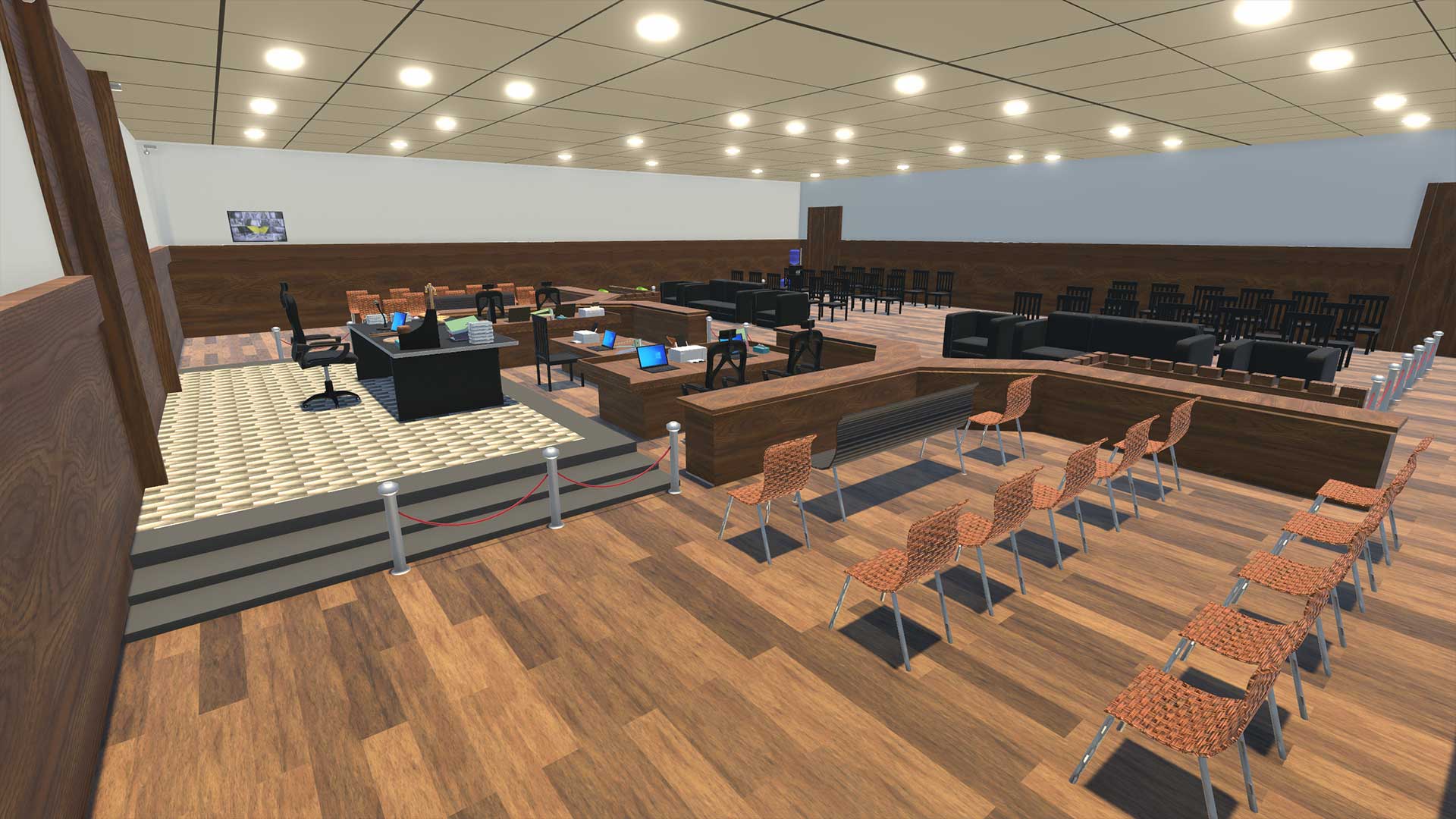 Looking for a detailed courtroom 3D interior? Your search ends here! Our comprehensive package offers a robust assortment of props, furniture, and essential elements designed to seamlessly bring high-stakes crime scenes and dramatic courtroom sequences to life in your projects. Whether for animations, games, or immersive virtual reality experiences, this 3D environment kit saves you time while elevating your creative output.