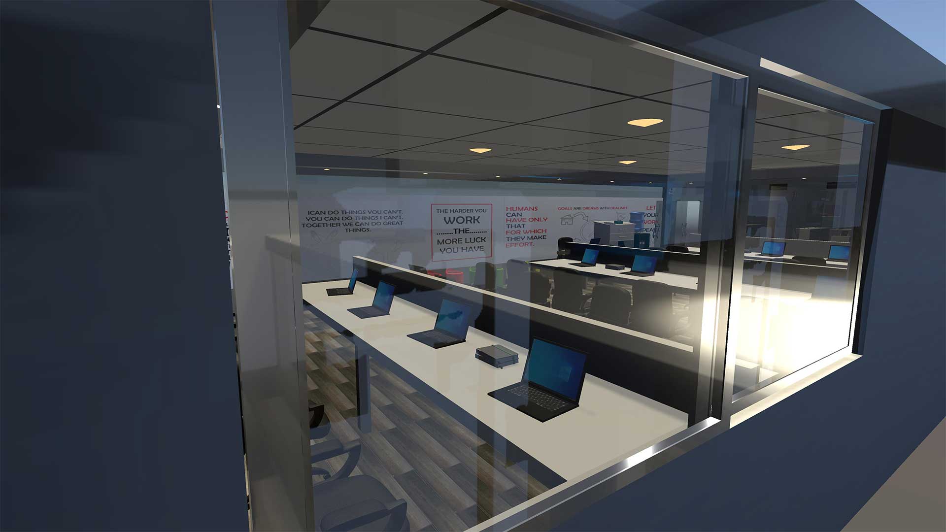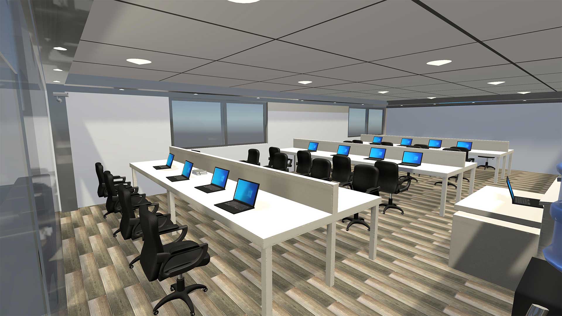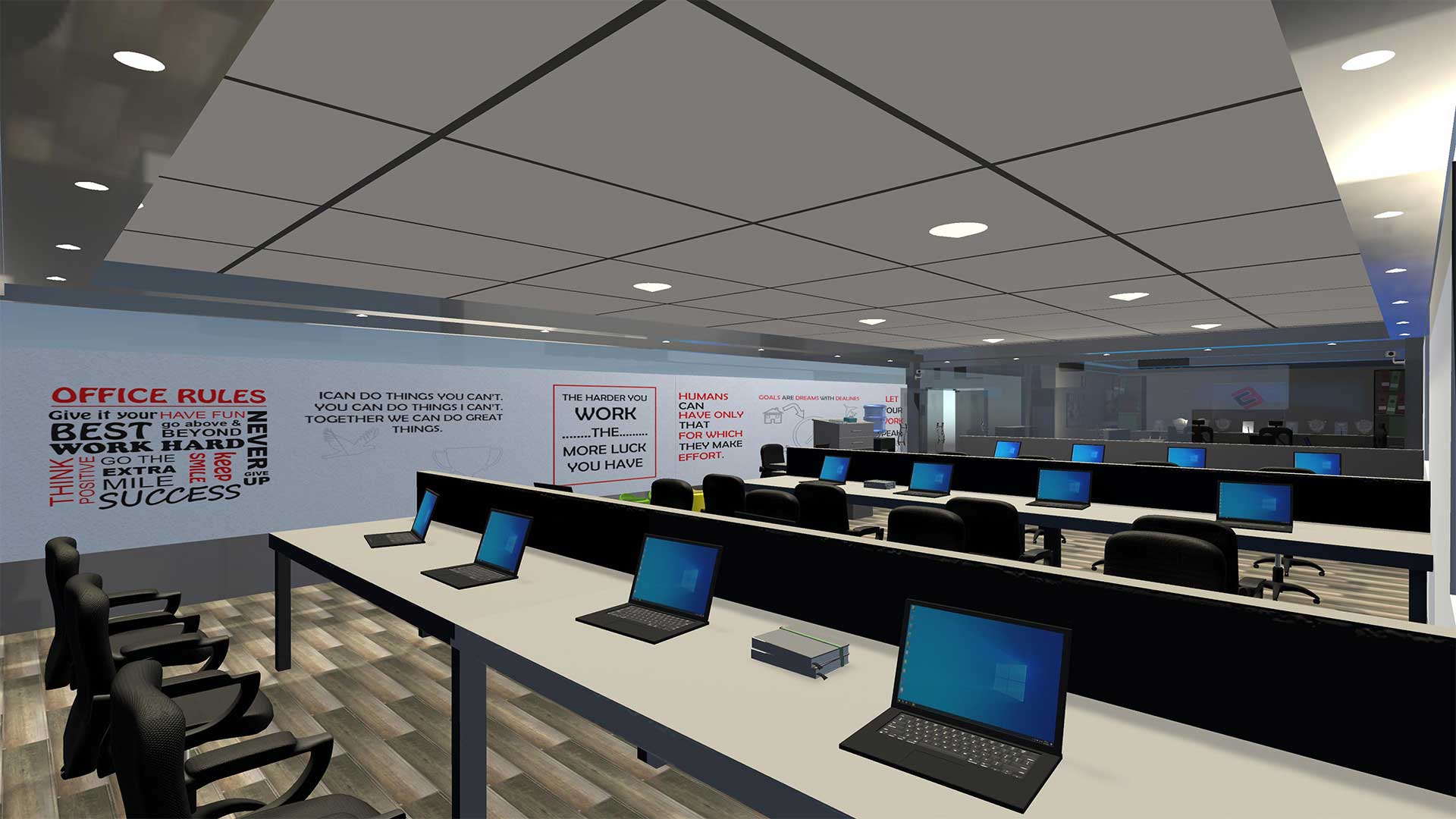 This scene focuses on practical use. Every asset stands at proper scale. The 3d office interior design allows you to mix and match pieces to form a layout that feels professional. You can arrange a reception area or set up an executive office with the same model. Light and materials respond well, letting you create different moods without extra effort. The office interior 3d detail gives each chair, desk, and storage unit a role in your environment.