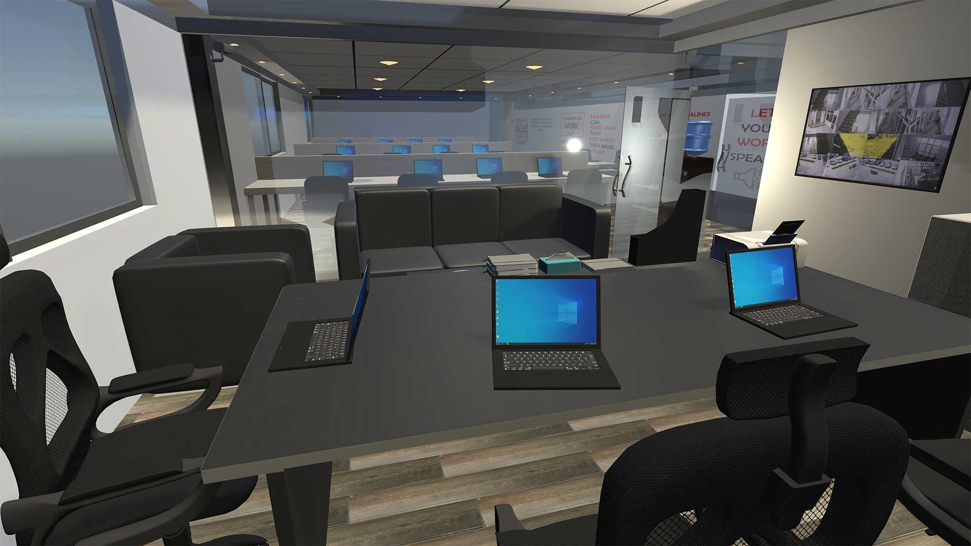 In this 3d office interior environment, you discover a space that feels true-to-life and easy to work with. Each element, from chairs and tables to computers and printers, fits together without fuss. You can place this 3d office room into your Unity scene and know it will integrate smoothly. The materials and textures look natural, so you get a believable result right from the start.