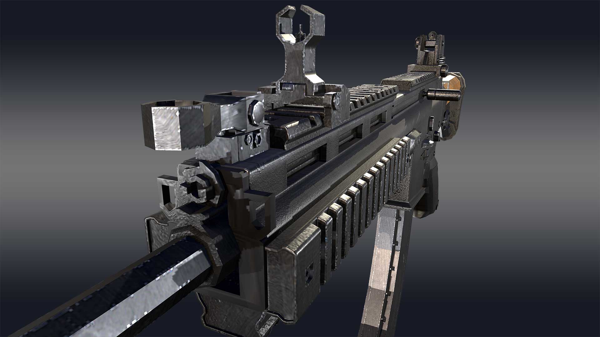 Designed with optimized polygon resolutions, the 3D rifle ensures efficient rendering without compromising on detail. The asset includes logically named objects for easy scene management, so you can seamlessly integrate the gun 3D model into your projects without needing extra plugins. Its fully textured surfaces, mapped in every format, deliver a true-to-life representation of the original Ruger SR-556 assault rifle. You can easily customize colors and materials, giving you the flexibility to adapt the model to various scenes.