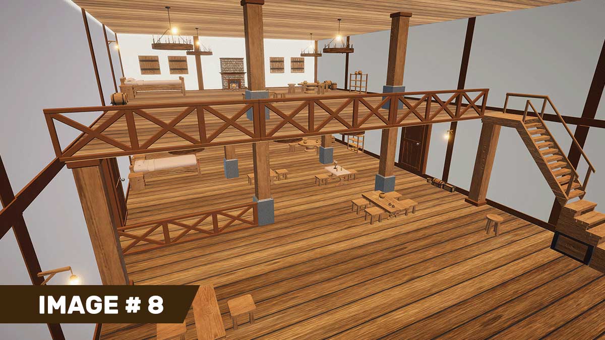 The Stylized Medieval Inn props & Interior Pack helps you create a charming medieval tavern easily. This pack includes a variety of interior props and modular architectural pieces for a perfect medieval tavern design. You can design a cozy and appealing medieval inn with customizable textures. Swap out parts and change textures to match your favorite colors and themes. With this pack, building a unique and inviting medieval-themed interior is simple. It features everything you need, from wooden staircases and chandeliers to multiple bedrooms and dining areas. Enhance the look with floors, area rugs, crates, baskets, and wall pieces. Add authenticity with medieval furniture props like dressers, tables, wooden treasure boxes, and pots. This pack provides endless options for crafting a stunning medieval inn interior.