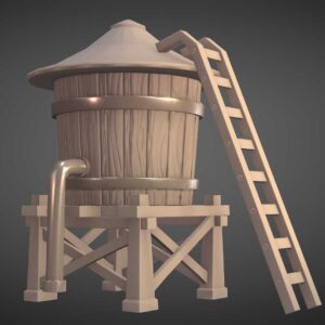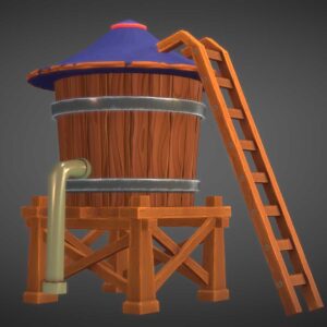 The “Stylized Water Tank 3D Model” is a versatile and detailed asset perfect for enhancing any project. This model features an elevated water tank with a sturdy base, durable walls, wooden stairs, and a secure lid. Designed for customization, you can easily adjust the tank’s texture, shape, and size to meet your project’s needs. The wooden stairs provide realistic access to the top of the tank, making it ideal for game development and simulation environments.